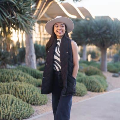 She also likes the matching 418 Scarf, which includes 2 fleece-lined deep pockets, 1 hidden zipper pocket, and 3 snaps you can use to transform it into a cozy vest!
