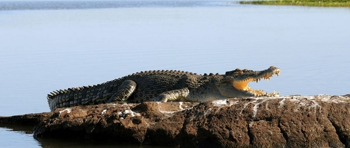 They often laze around in the sun most of the day, hunting at night, and they’re notorious for stalking the banks and ambush-attacking prey.