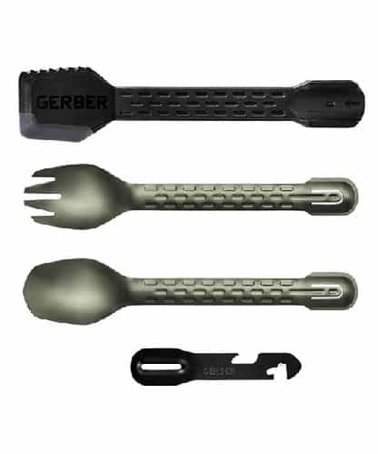 Gerber’s ComplEAT Tool is also a handy tool for your camp kitchen collection. It comes with a fork, spoon, spatula, and 4-function multi-tool that can snap together to make tongs and nest for easy transport.