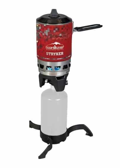 The Stryker 150 cooking system from Camp Chef weighs in at 21.4 oz (not including propane), which includes a