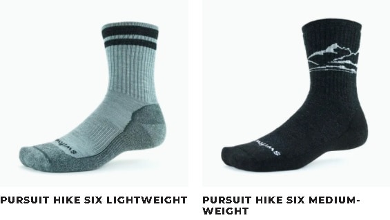 The Pursuit Hike sock collection from Swiftwick is specifically designed for hiking. Their blend of soft Merino Wool and Olefin fibers offer exquisite comfort and impressive moisture-wicking abilities.