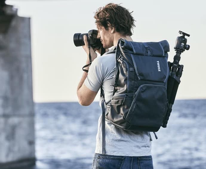 The 32L Covert Camera Backpack from Thule is a versatile backpack and camera pod combo (You can carry them together or separately), with padded interior compartments and a fully customizable gear divider system.