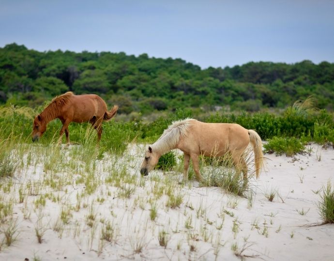 But it’s thrilling simply watching the wild horse herds from a safe distance, with the backdrop of salt marshes and maritime forests behind them.