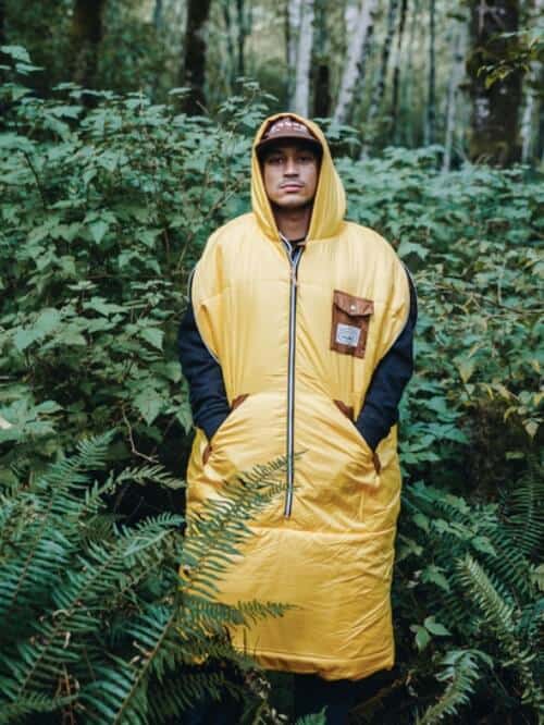 The Reversible Napsack from Poler works with a similar concept (including the built-in pockets). But where the Selk’bag has defined arms and legs, the Napsack simply has zippers to put your arms through and a cinch at the bottom.