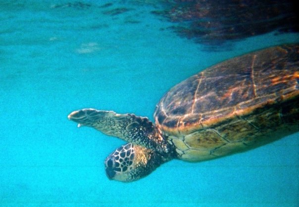Unfortunately, the Hawaiian Green Sea Turtle (known locally as honu), is currently listed as threatened under the U.S. Endangered Species Act.
