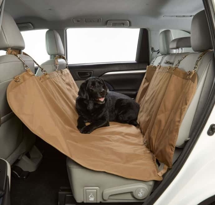 Nickel-plated hardware gives the 56″ x 57″ seat saver a rugged look, and we love that it packs into its matching carrying case, which doubles as a bag for transporting dog treats and toys.