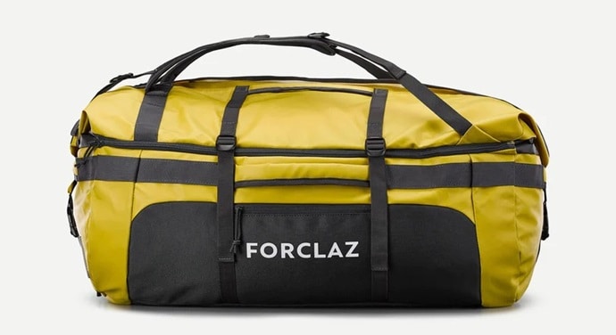 The largest of all the duffel bags we’ve tested this year (and maybe ever) is the Forclaz 500 Extend 80-120 L Duffel Bag from Decathlon.