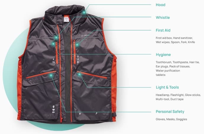 This vest has a ton of pockets, and for an extra $60 they’ll fill them with all sorts of essential survival gear. a whistle, first aid box, hand sanitizer, water, purification tablets, headlamp, duct tape, masks, and more, all ready and waiting for any emergency. Use code “EARLY5” to save 5% off your order!