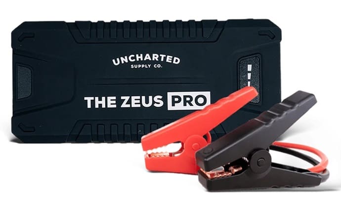 An awesome option for providing power when you’re adventuring off-grid, the Zeus from Uncharted Supply Co. is a 20,000 mAh portable battery jumper that boasts enough power to start even the largest trucks multiple times.