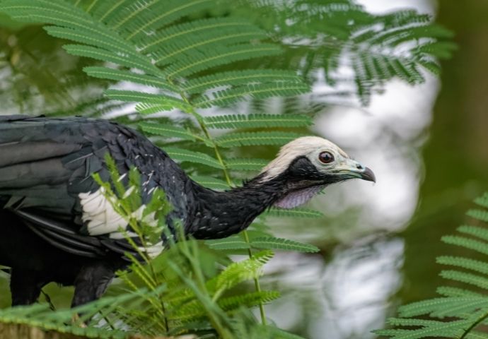 The Spix’s Guan is named after German naturalist Johann Baptist von Spix and boasts brown feathers speckled with white and a vivid red wattle.