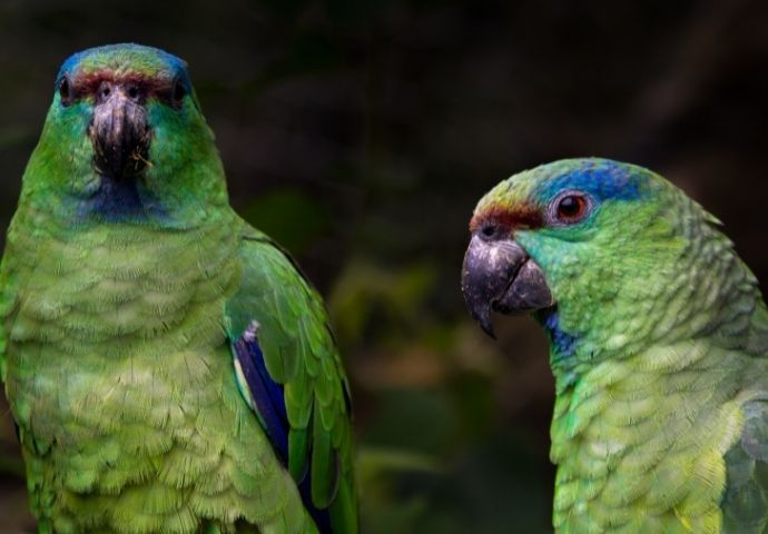 Amazon parakeet species include the grey face of the Dusky-headed Parakeet, the striking reds of the Maroon-tailed Parakeet, and the brilliant blues of the Cobalt-winged Parakeet.