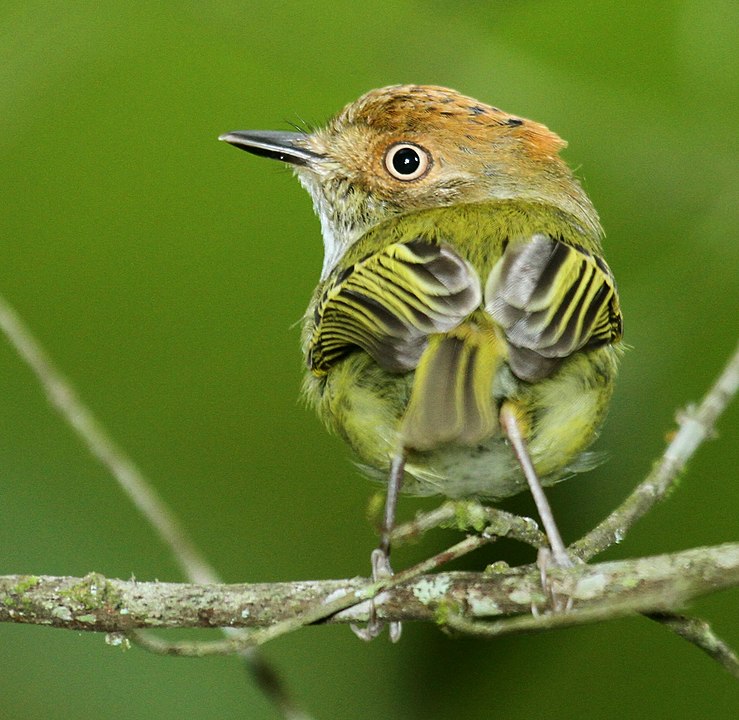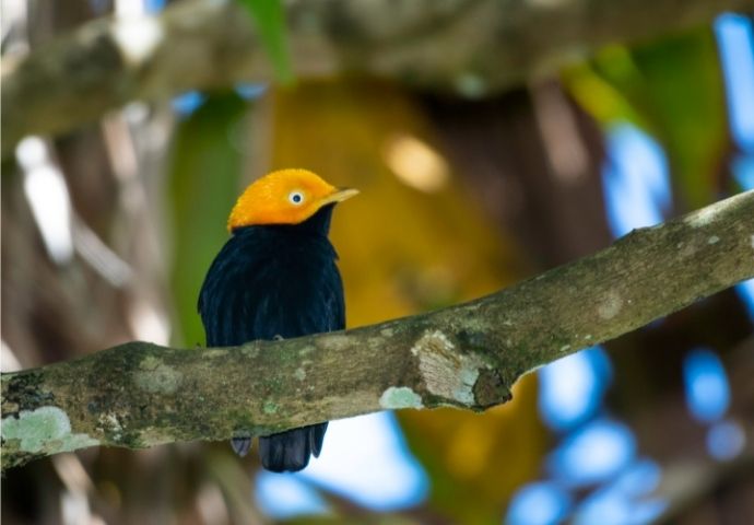 One of around 60 species of manakins found in the American tropics, the Golden-Headed Manakin is a colorful cutie typically measuring about 3.7 inches long and weighing less than half an ounce.