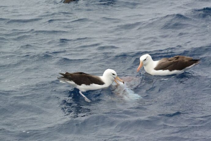 As for migratory sea birds, there are a number of albatross species, including the Yellow-nosed, Black-browed, Shy, Amsterdam, and Chatham Albatross.