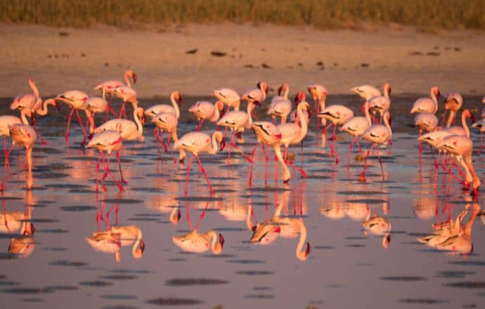 When flooded, it’s visited by thousands of Zebras, Wildebeest, and Flamingoes.