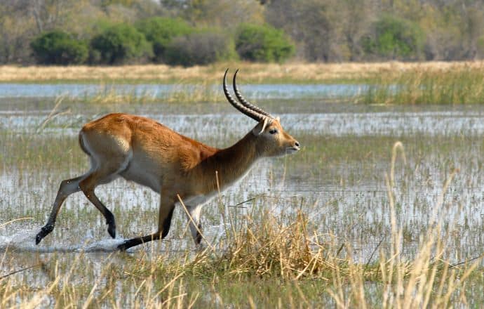 The famed Big 5 African animals are often seen here, as well as Giraffes, Hippos, Lechwe (a commonly seen antelope), and many Botswana bird species.