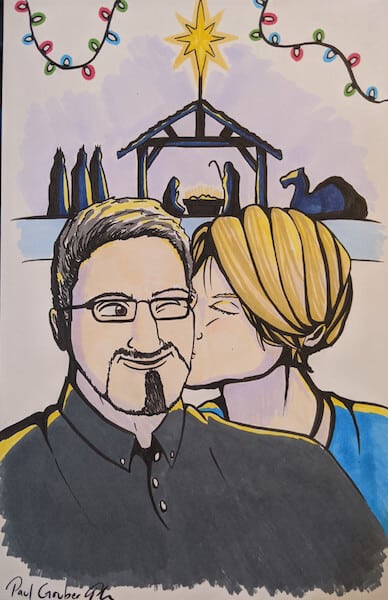 This is the first Tellinga card in the series of 12 I surprised Mary with. It depicts our second date, when she kissed me for the very first time in front of the Live Nativity attraction at Lake Lanier Islands’ Magical Nights of Lights.