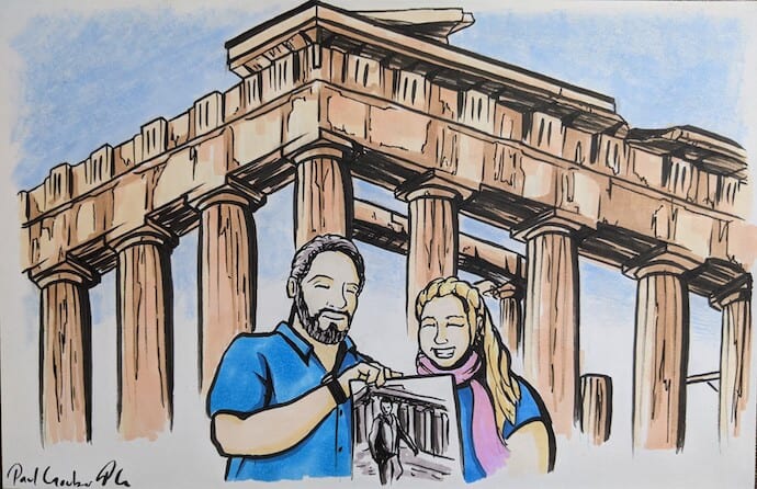 There’s a photo I’ve had for decades of my Granddad descending the steps of the Acropolis of Athens when he was my age. When we went to Greece, we took the photo with us, did our best to recreate it, then took a photo of us holding his photo as I gamely tried to stop sobbing.