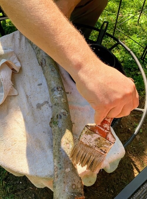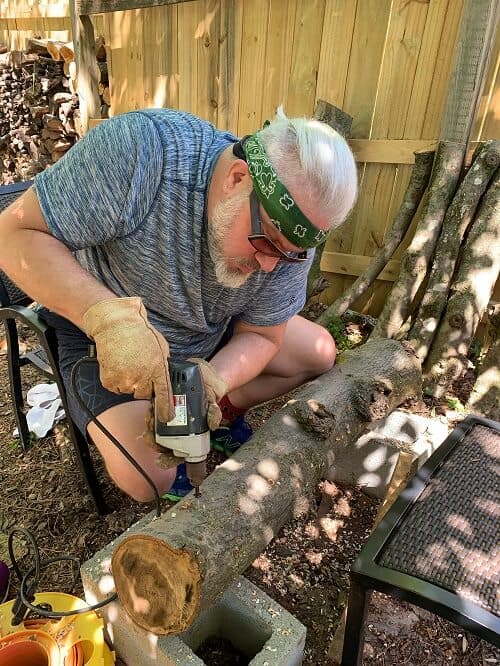 - Sealing the logs: Once the logs are plugged, they need to be sealed with beeswax or organic soy wax. Sealing the logs involves painting melted wax over each plug, as well as anywhere the actual wood is exposed. This helps the log stay moist and prevents other fungi from invading.