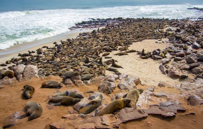 The shores of Cape Cross are literally littered with seals lounging, sleeping, mating, dying, fishing, eating… there are seals as far as the eye can see!