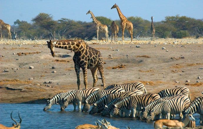 Plus, the scarcity of water means that the animals often gather around the watering holes to drink.