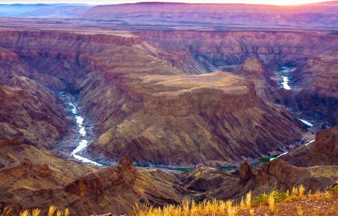 The most notable feature in the park is the Fish River Canyon. This is Africa’s largest canyon at about 100 miles long, up to 18 miles wide, and over 1500 feet deep.