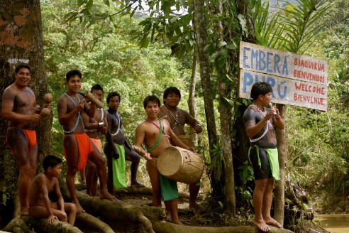 The tribe welcomes visitors (who arrive via motorized dugout canoes) with celebratory song and dance, followed by an informal discussion of the Embera way of life and a brief nature hike.