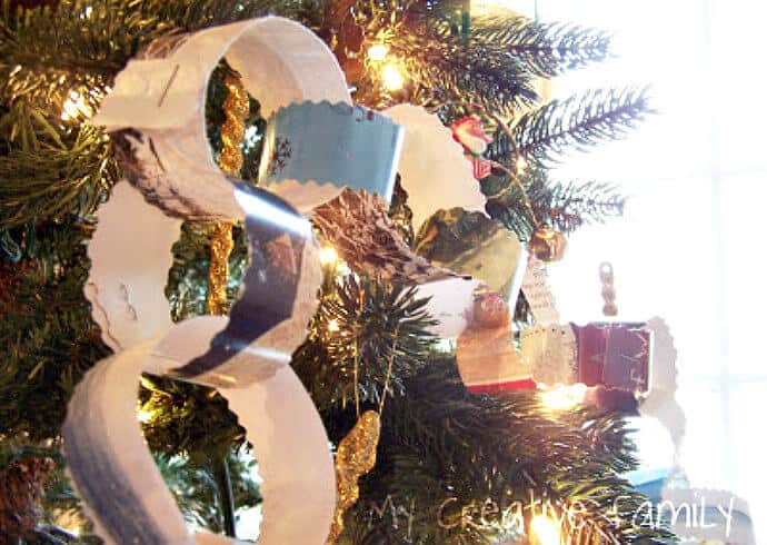 - Repeat this process until you’ve made a chain garland long enough to decorate your Christmas tree or fireplace mantle with festive flair.