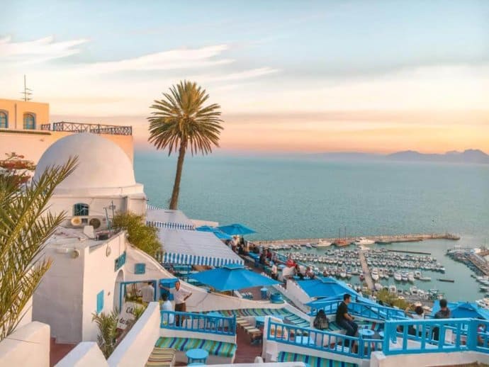 Our favorite activities included taking a camel ride on the Sahara dunes, visiting the UNESCO World Heritage-listed ruins at Carthage, watching the sunset from the rooftops of a Tunis souq, exploring the picturesque town of Sidi Bou Said, and visiting the beautiful beaches on the Mediterranean coast.