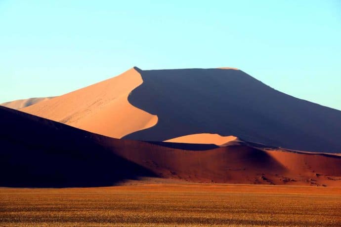 In terms of things to do in Namibia, go to Etosha National Park, where you can spot 4 of the famous Big 5 safari animals (no Cape Buffalo). Visit the Namib desert for breathtaking scenery, including red sand dunes, petrified trees, dried lakes, and endless night sky.