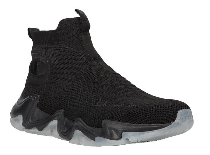 The Champion Hyper C. Raw H slip-on high-top is a bit more radical, with an elasticized collar on the breathable mesh upper and a chunky outsole design that looks like ocean waves. The urban style is paired with a lightweight EVA outsole for improved traction, and a P.D.F. sock insert for better fit and comfort.
