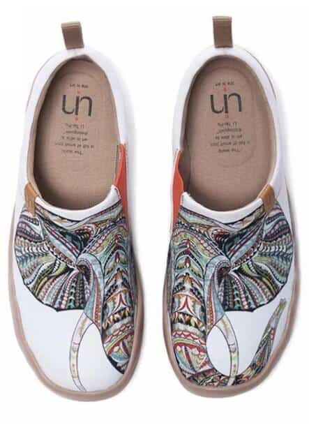 But that’s also what we like most about them: they’re simple, breathable, 100% cotton walking shoes featuring an Indian-inspired design featuring one of our favorite animals– the Elephant.
